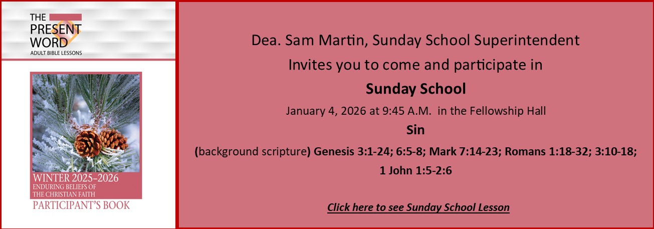 The purpose of our Sunday School is to provide a forum for discussing, interpreting, understanding, and applying the scriptures. We promote Christian values according to scriptures.